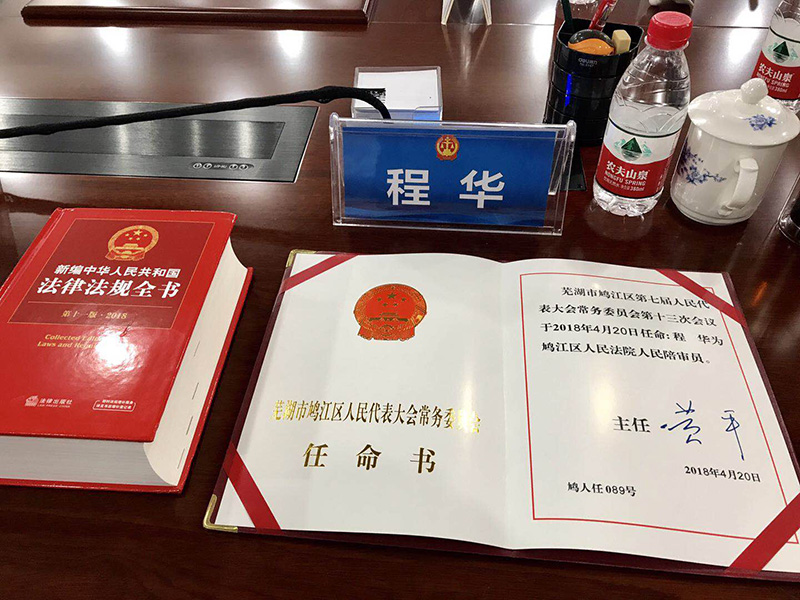 2018年5月24日,鸠江区人民陪审员受聘任命大会在芜湖经济技术开发区人民法院一号会议室胜利举行。公司董事长程华经芜湖市鸠江区第七届人民代表大会常务委员会第十三次会议通过,任命为鸠江区人民法院人民陪审员,任期5年。